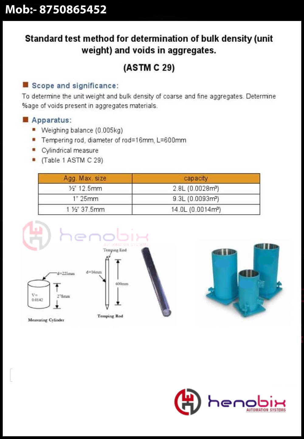 Bulk Density Bucket Determines Bulk Density or unit weight of aggregates..