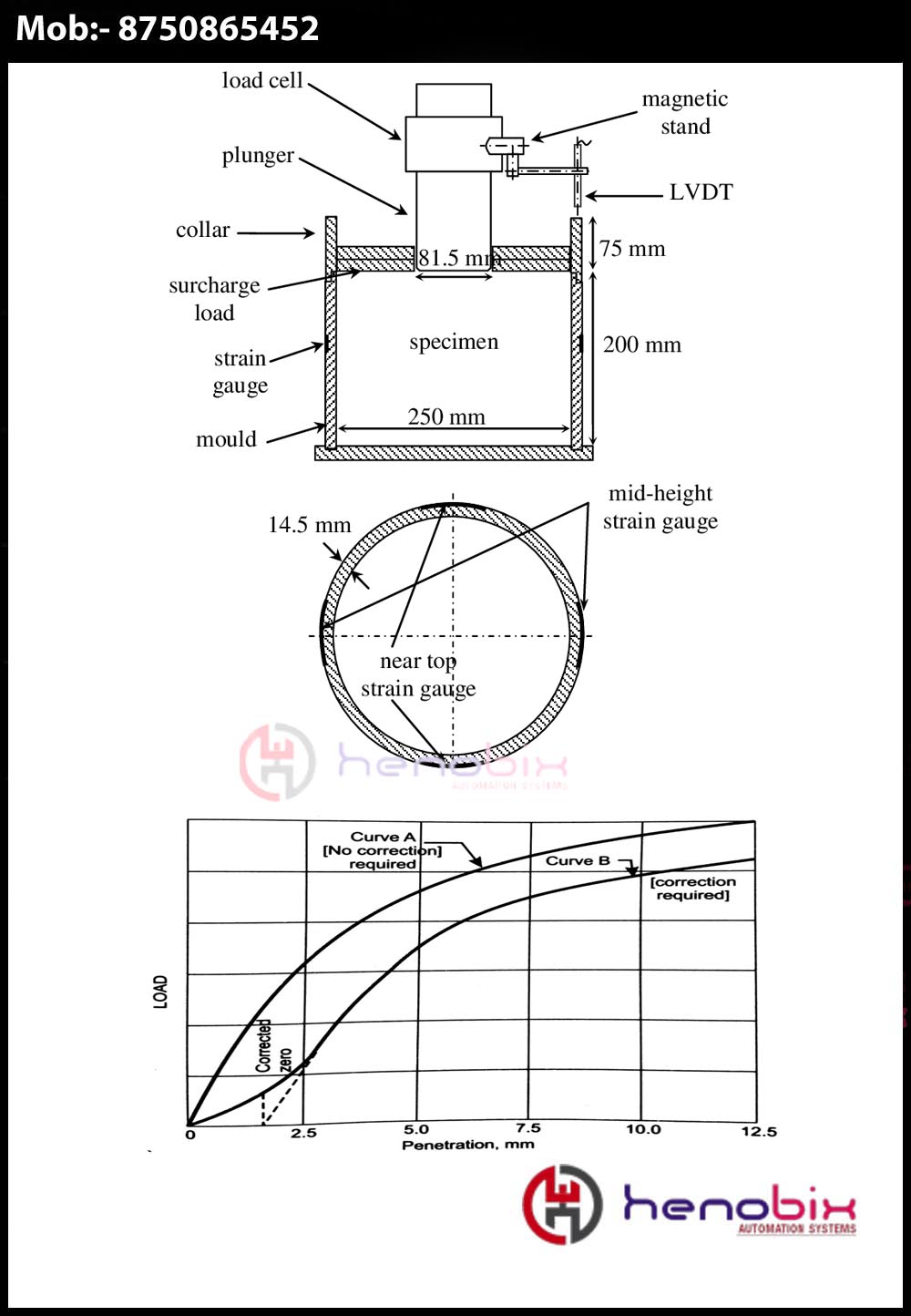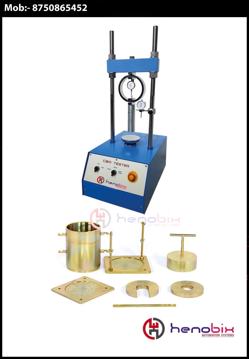 The California Bearing Ratio test (typically known as CBR test) is an empirical test created in California, USA. It defines the relative bearing ratio and expansion characteristics under known surcharge weight of base, sub-base, and sub-grade soils for the design of pavements, roads, and runways. The CBR test is used widely in the control of sub-grades and selection of materials. The test can be performed in-situ on location or in the lab on prepared samples. Due to the empirical nature of the test, it is effective only for the application for which it was created i.e., the design of highway base thickness. This load frame is designed for conducting Unconfined, CBR, Triaxial, and other routine tests. The loading system includes a screw jack with detachable handle. The lower platen moves up and down. The top bracket is modifiable for vertical clearance and has an adaptor for connecting regular proving rings. A dial gage mounting bracket is fitted on one of the two pillars. Rate of strain: 1.00 and 1.27 mm/minute.