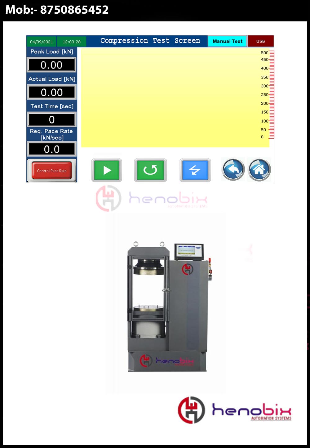 Automatic pace rate control from 0.5kN/sec to 20kN/sec
