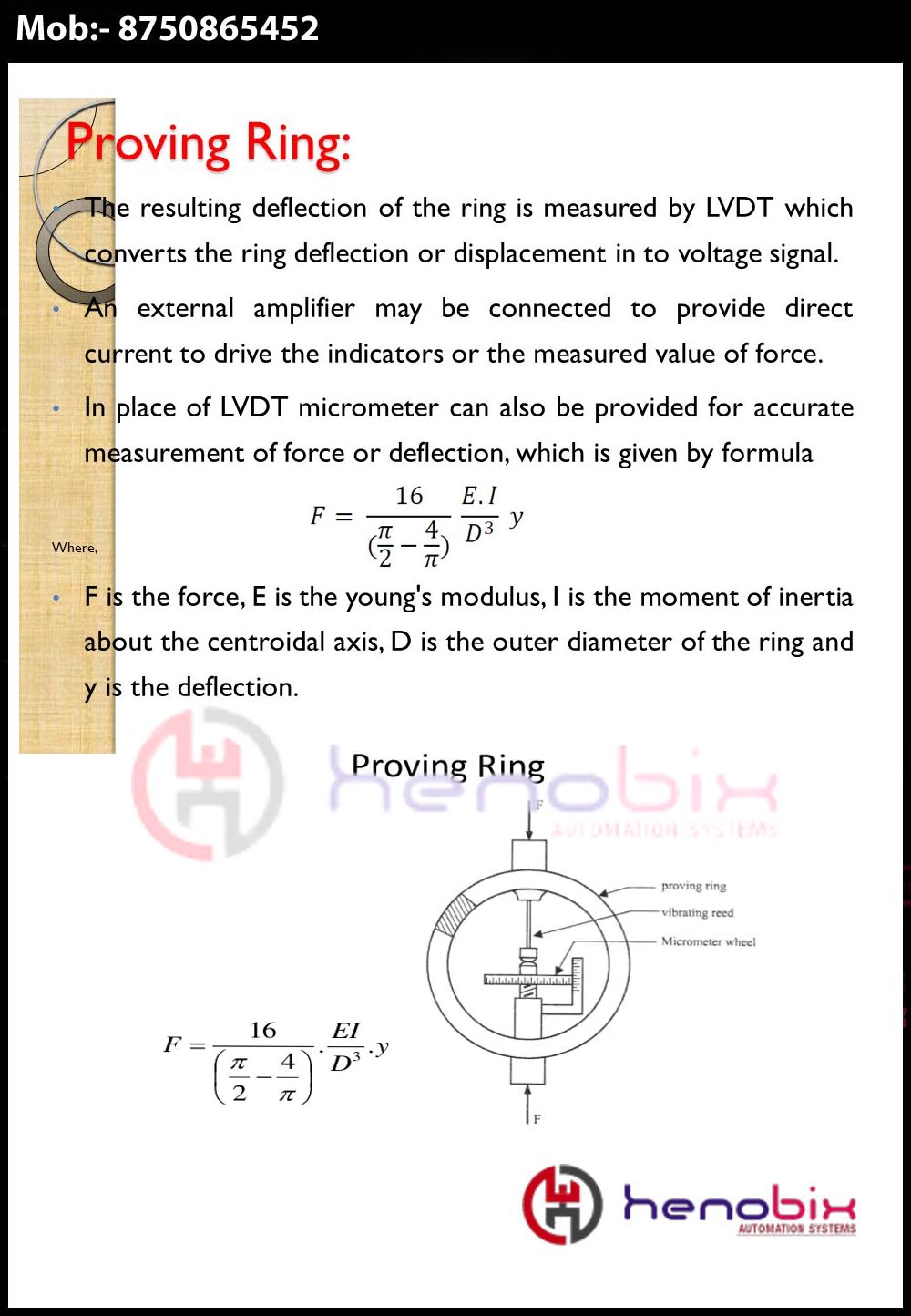 The proving ring is a device used to measure force. It consists of an elastic ring of known diameter with a measuring device located in the center of the ring. Proving rings come in a variety of sizes. They are made of a steel alloy. Proving rings can be designed to measure either compression or tension forces.