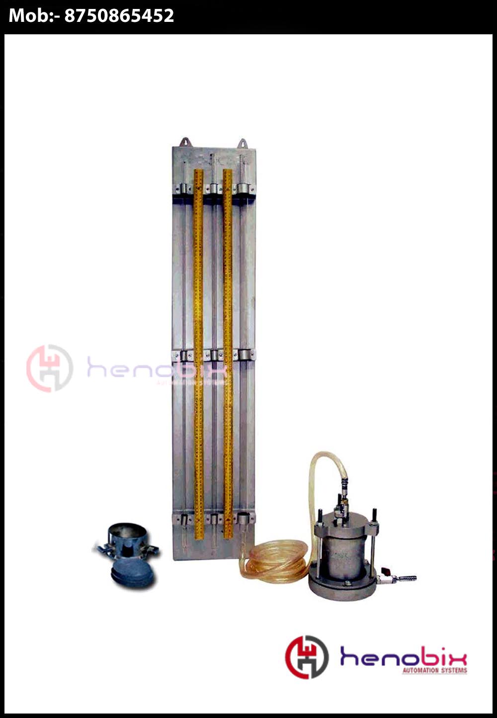 The permeability cell has pressure points at different levels which are connected to the manometer tubes fixed on a stand with a graduated scale.