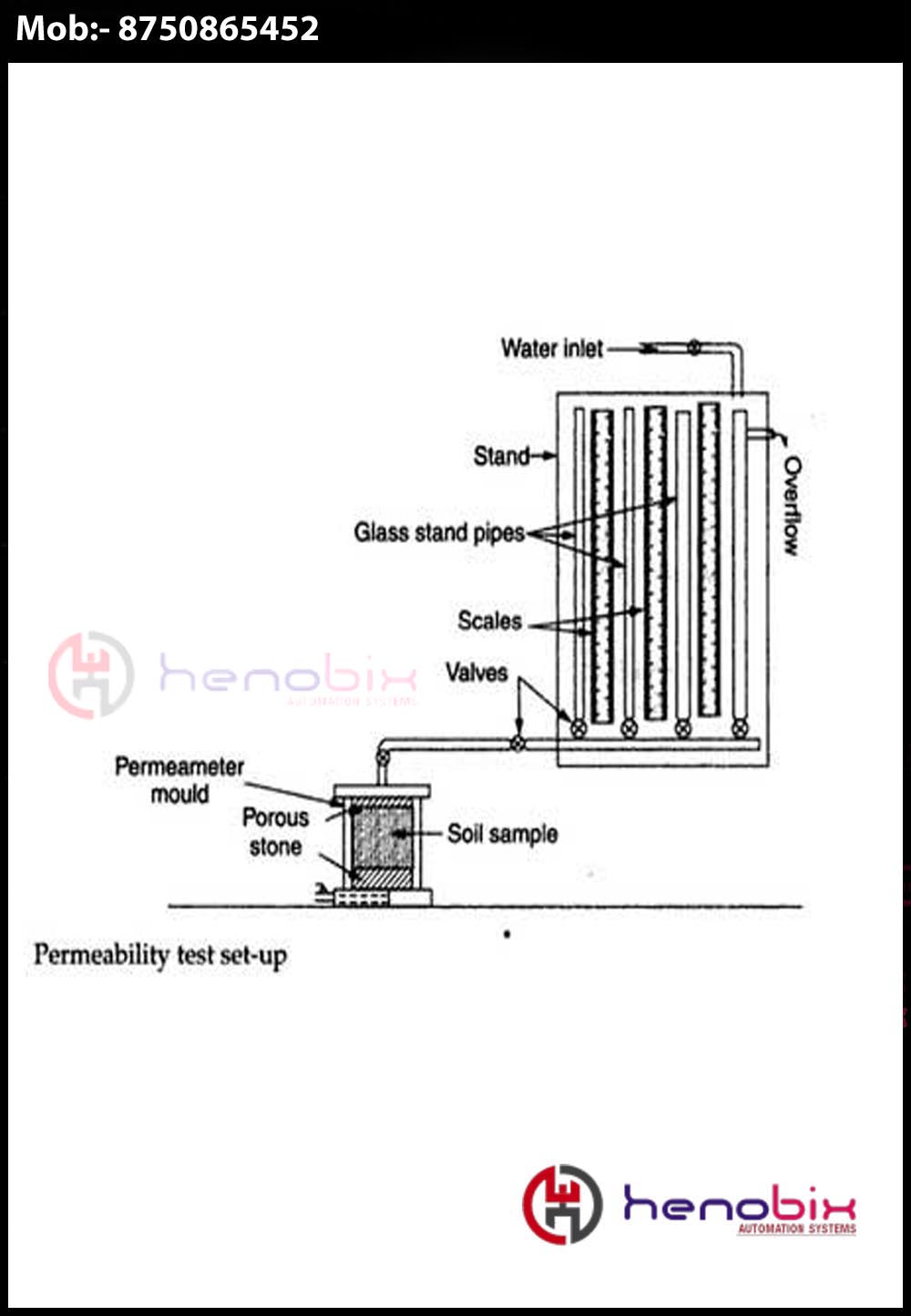 Soil Permeability Test Apparatus is a property of soil that permits the flow of water through its interconnecting voids. Permeability is an important engineering property that governs the rate of settlement of saturated compressible soil layers and the rate of flow of aquifer. Permeability is taken into account for pumping groundwater, spacing well points for de-watering foundation sites for excavation, retention of water in reservoirs, design of dams, and selection of soils to be used for various zones of embankments of dams and reservoirs. The coefficient of permeability can be computed from the effective diameter of particles, porosity, specific surface, and from consolidation test results. But permeability depends on numerous factors; hence, determination of permeability by direct laboratory method using an apparatus called Permeameter is considered more accurate. The specimen used in par is small, time taken is less, and the results obtained are accurate. There are two types of Parameters, namely Constant Head Parameter and Falling Head Parameter. falling head permeability test parameter are used for testing remolded or undisturbed fine-grained soil having less than 10·2 cm/sec coefficient of permeability and Constant head permeability test Permeameter are used for coarse-grained cohesionless soils