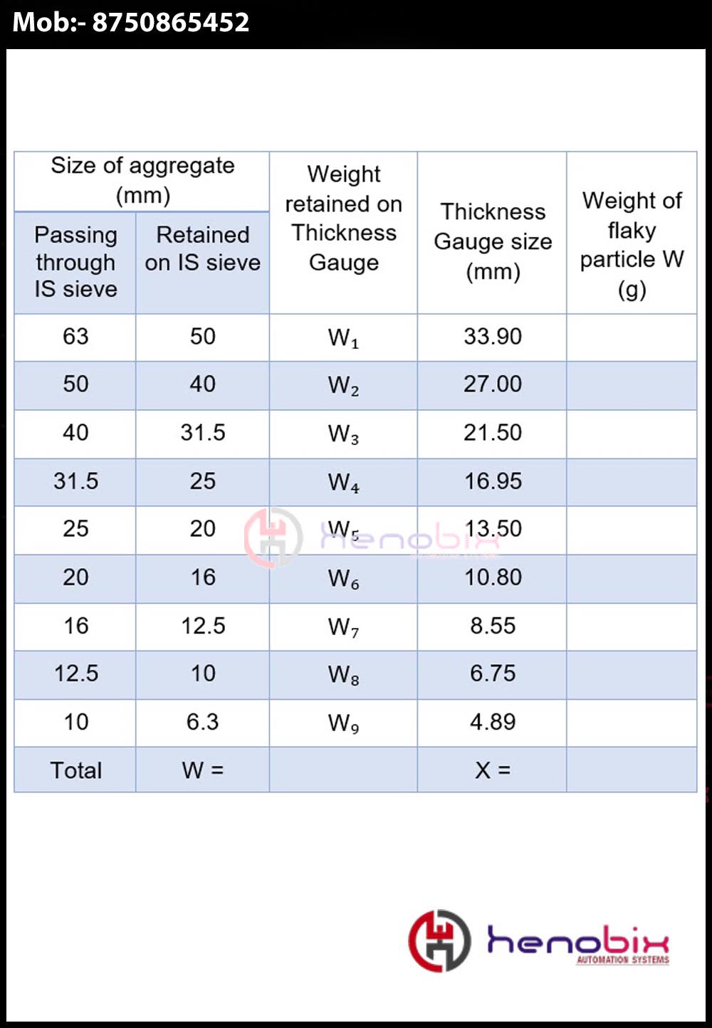 It Consists of a frame with a sliding panel. The Panel has slots of Different Standard Lengths and Widths accurately Cut. The flakiness of aggregates is determined by measuring the thickness of individual particles..