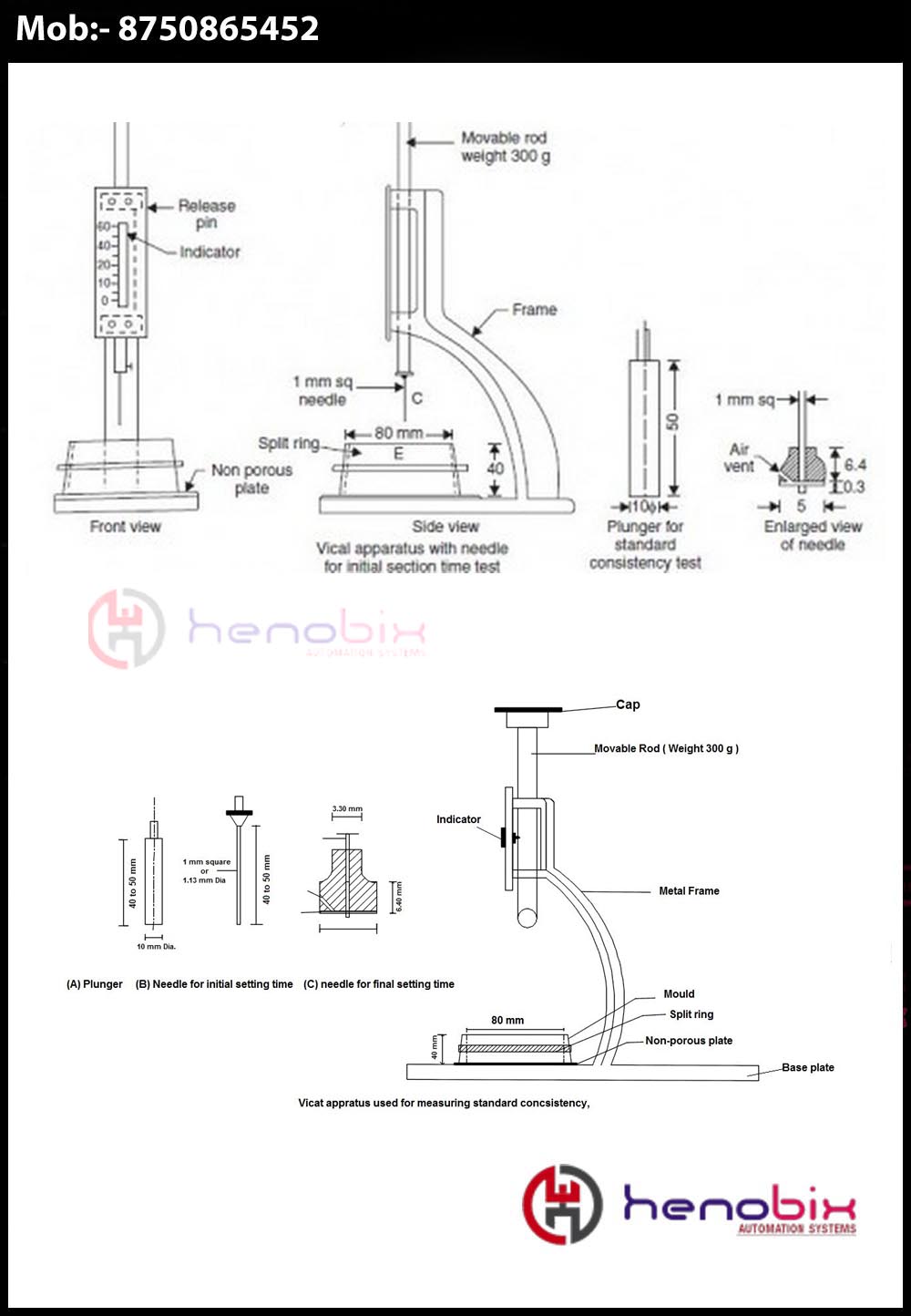 2.Vicat needle apparatus for determining consistency of hydraulic cement. Gypsum plaster, lime etc. As per ASTM C 187-58 C 472-62 C 110-58, IS 2542(Part-1) can also be supplied..
